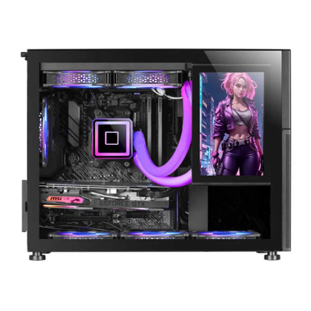 - Optimize your work or gaming space with your PC case´s innovative 8-inch IPS LCD screen, adaptable in vertical or horizontal orientations and with the ability to install side and front quickly and easily. With a high resolution of 1280x800 and HDMI connection, this screen adds versatility and functionality, allowing you to manage multiple tasks and take your creativity to the next level. It is the ideal tool for those looking for the best gaming case and for content creators looking for efficiency and customization.