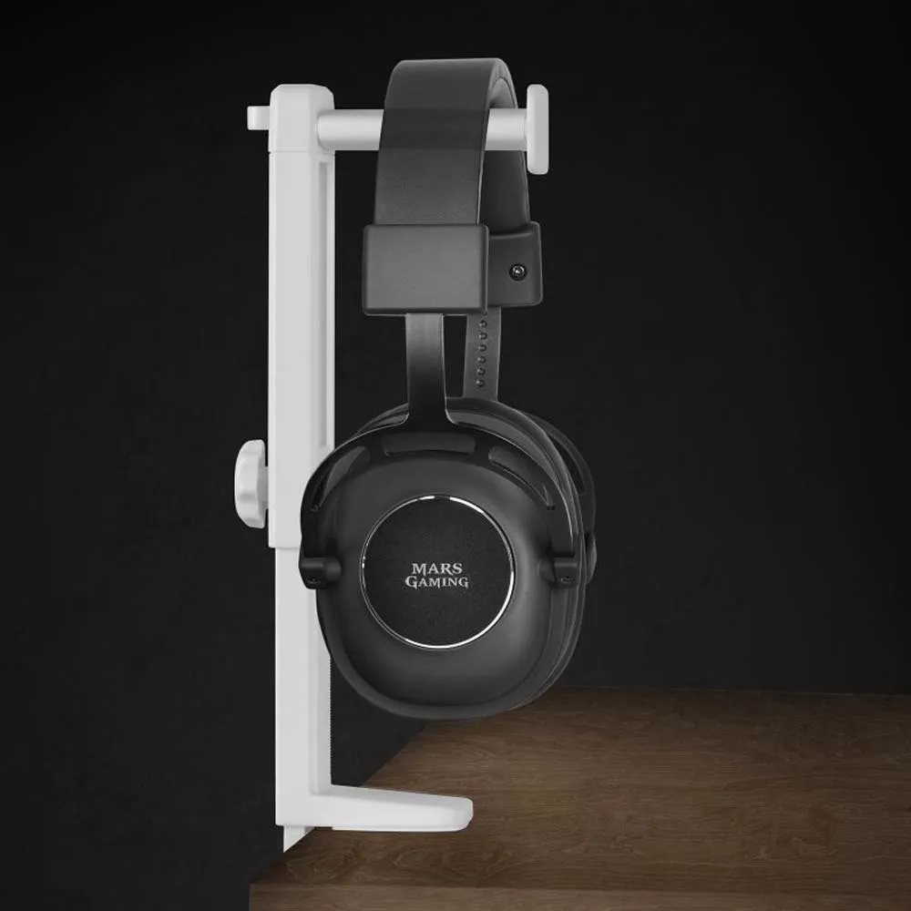 In hook mode, place your headphones on the hook support under the table, collect the cable comfortably and rotate its structure to store them under the table.