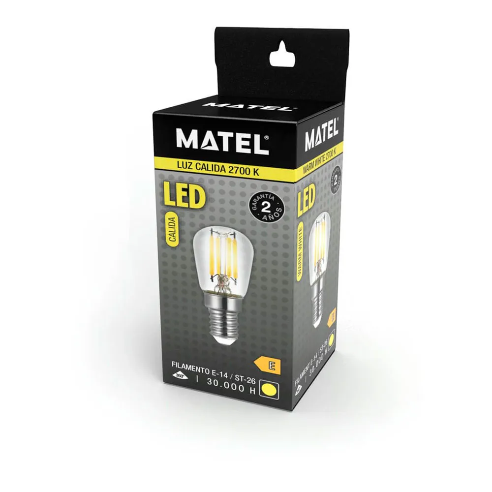 MATEL LED Filament Bulb for Refrigerator E14 2W.