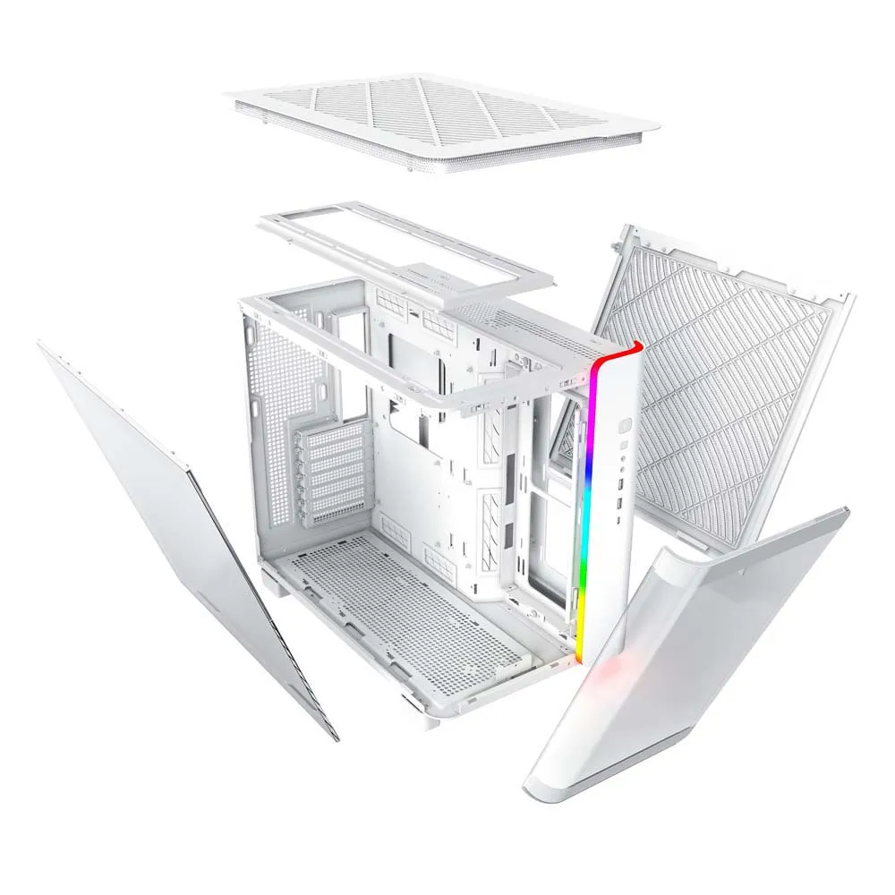But that´s not all, this case also boasts a sturdy and durable construction, thanks to its high-quality materials. The tempered glass side panel not only adds a touch of elegance but also allows you to showcase your components and RGB lighting.