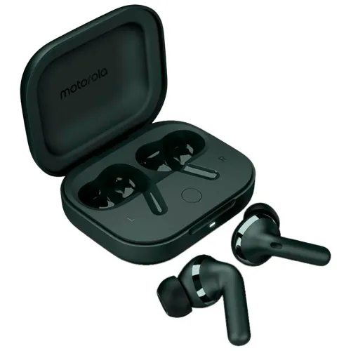 Immerse yourself in high-resolution audio with the Motorola Moto Buds+. Tuned by Bose and featuring Dolby Atmos with Head Tracking, these earbuds deliver unparalleled sound via dual dynamic drivers. Intelligent adaptive ANC silences distractions, while transparency mode keeps you aware. Enjoy up to 38 hours of total playtime, convenient Qi wireless charging, and crystal-clear calls with 6 mics and ENC. With a water-repellent design and seamless dual-device connectivity, they´re built for your life, no matter the weather