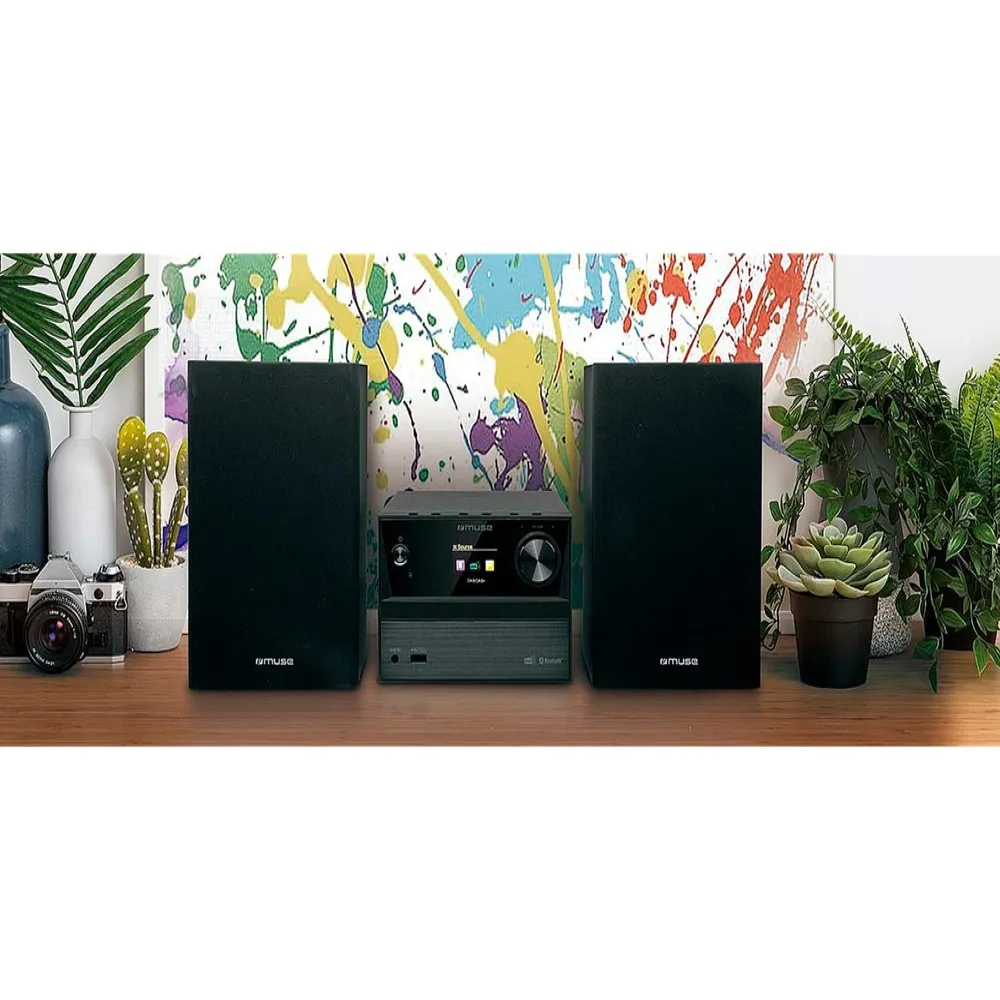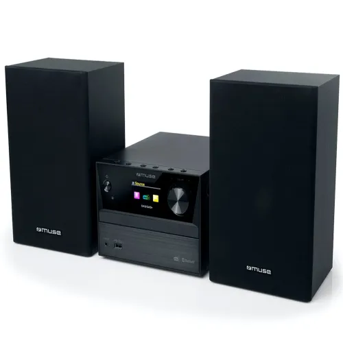 Micro system with MUSE M-70 DBT speakers in black with 40W of power, CD player and FM / DAB + radio functions, connections:bluetooth, USB and 3.5 jack.
