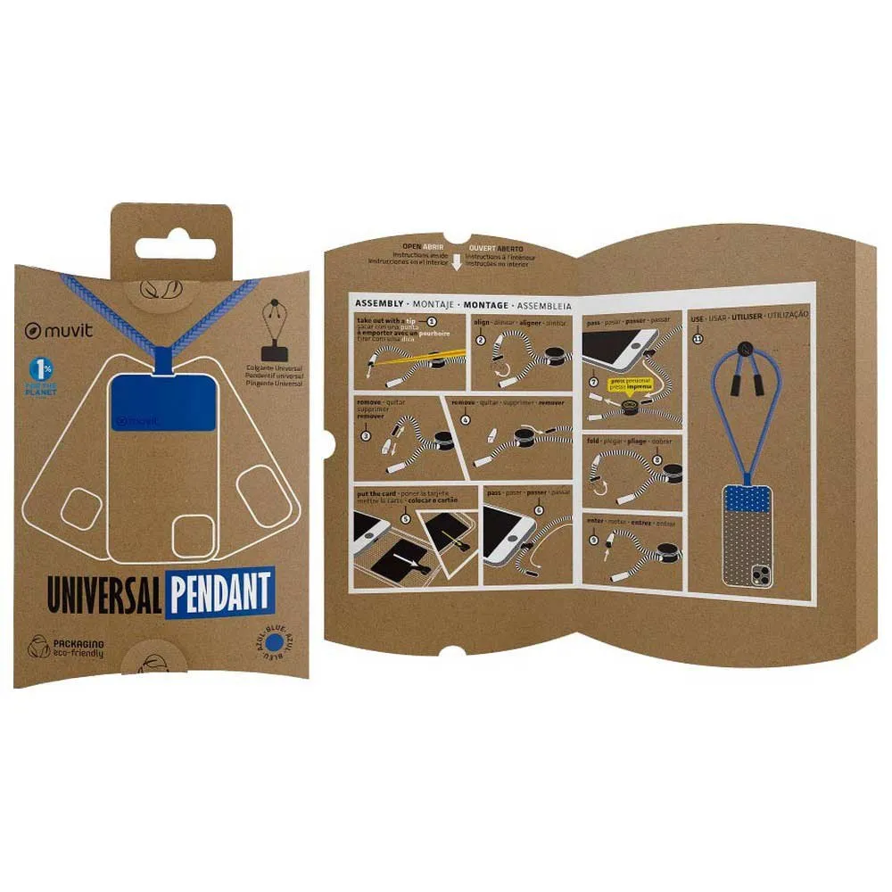 Keep your smartphone secure and eco-friendly with the muvit for change universal pendant compatible with any case in blue designed with sustainability in mind the cord is made from recyclable fibers and the universal card is crafted from eco-friendly PU adjustable to any size the design is comfortable and practical and the pendant installs easily between your smartphone and case without glue the packaging is eco-responsible with printed instructions inside at muvit for change we believe every small choice counts which is why our accessories are made mainly with certified recycled plastic offering a conscious option for those looking to reduce their environmental footprint from cases to solar chargers each item reflects our commitment to sustainability join the environmental movement and protect your device while caring for the planet compatible with all smartphone cases product type mobile pendant protection group gadgets eco-friendly products.