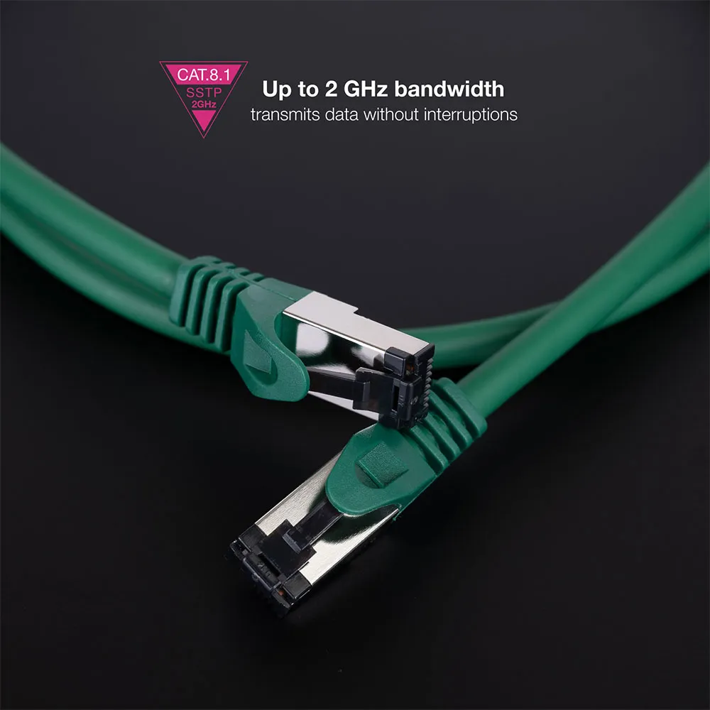 - The CAT.8.1 Ethernet cable supports bandwidth up to 2 GHz and data transmission speeds of up to 40 Gbps without interruptions at distances of up to 30 m.