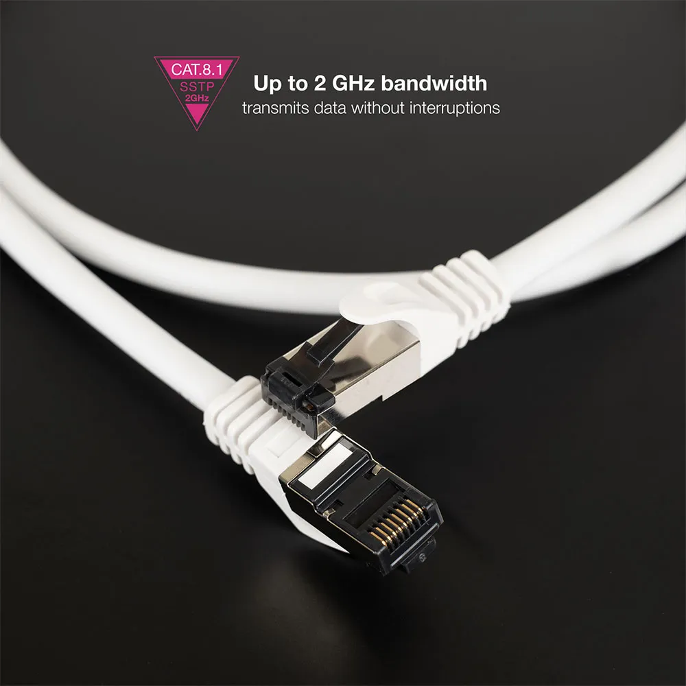 - The CAT.8.1 Ethernet cable supports bandwidth up to 2 GHz and data transmission speeds of up to 40 Gbps without interruptions at distances of up to 30 m.