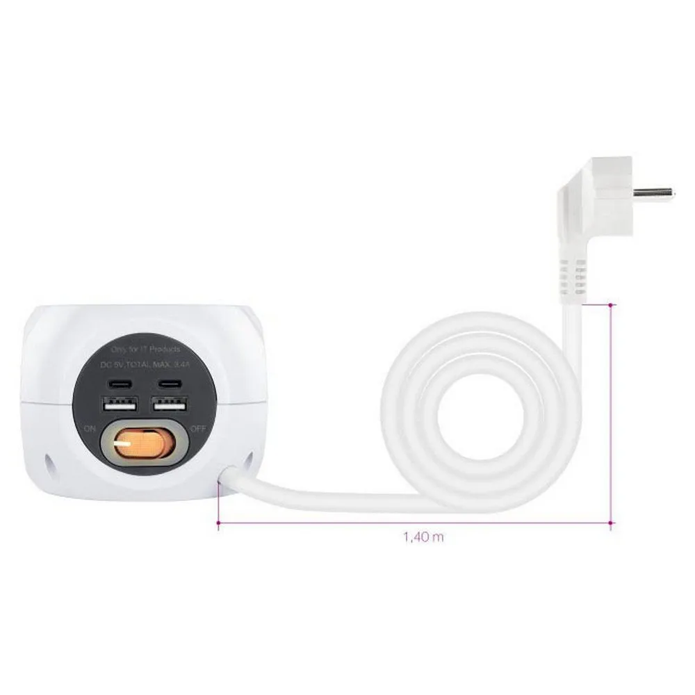 Base with 3 sockets with 4 USB´s (2 USB A + 2 USB-C), with switch.