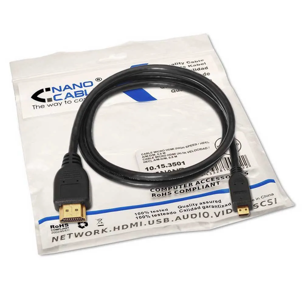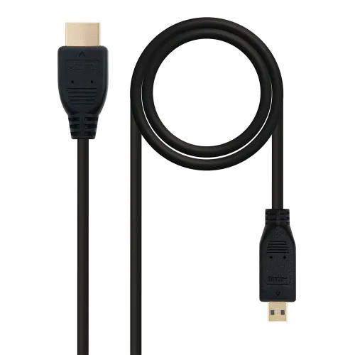 High speed HDMI cable with Ethernet (V1.4) with type A male connector on one end and type D connector (Micro HDMI) on the other.