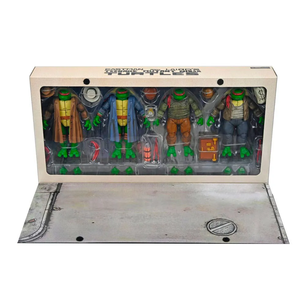 Presented in collector-friendly window box packaging that showcases the figures and their accessories, this 4-pack is perfect for both in-box and out-of-box collectors. Don´t miss your chance to own this incredible piece of TMNT history and let the Turtles blend into your collection in style.