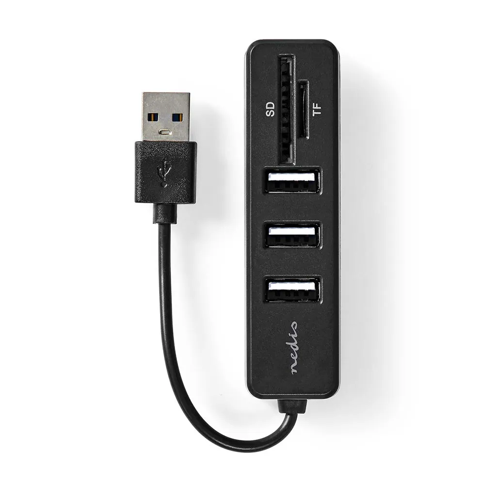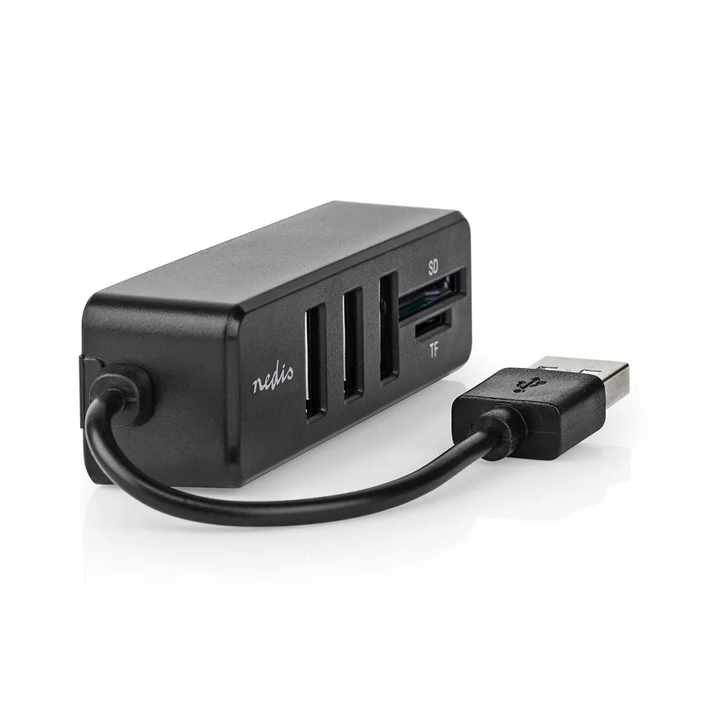 This Nedis USB hub is equipped with 4 USB 2.0 ports and a (micro)SD card reader.
