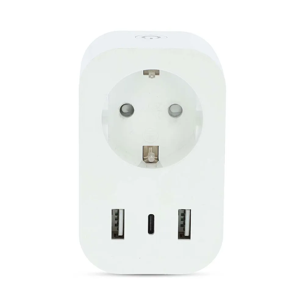 This smart plug feature a socket as well as one USB-C and two USB-A ports, allowing you to plug in any USB device effortlessly.