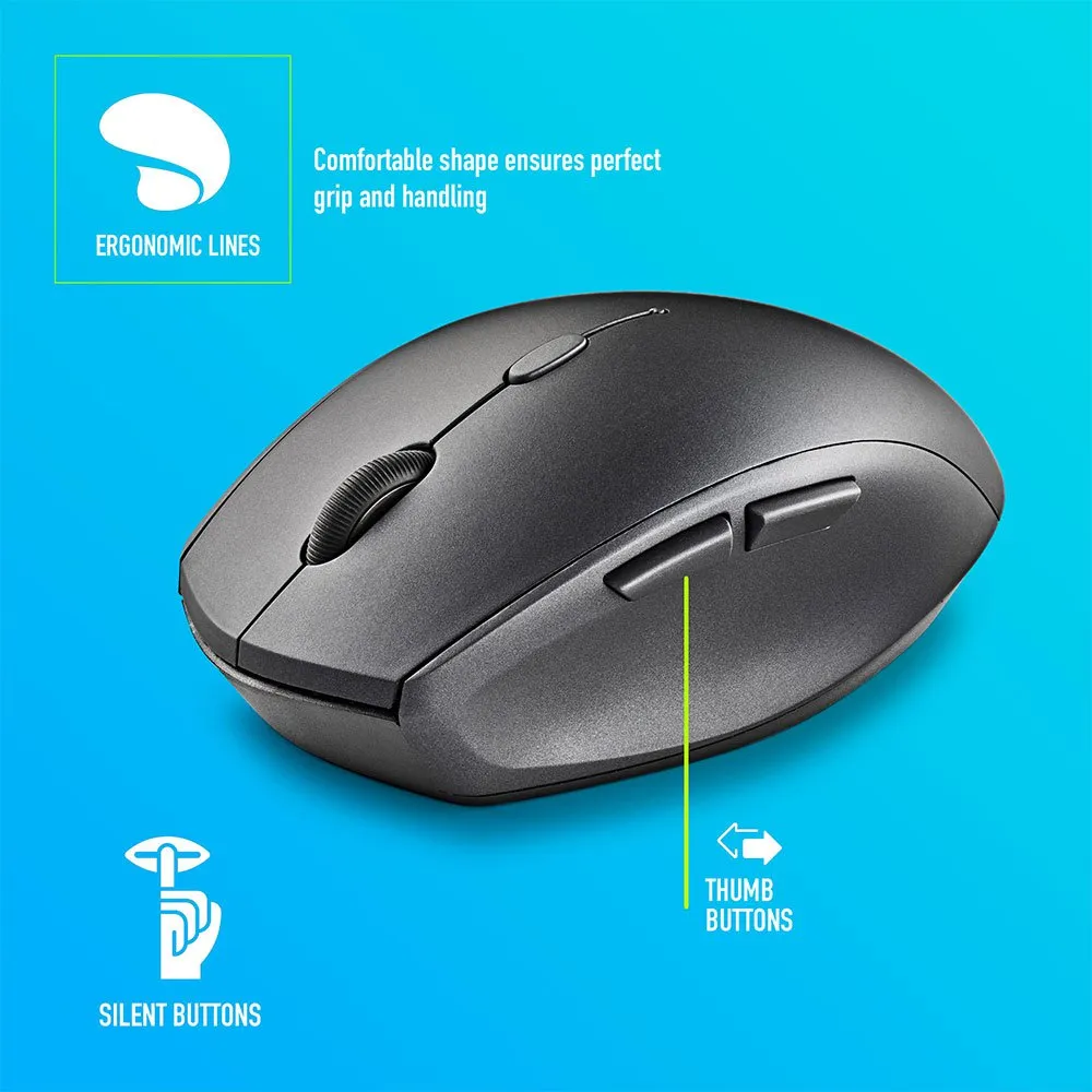 - Ergonomic wireless mouse with silent keys, specially designed for laptops and desktop computers.