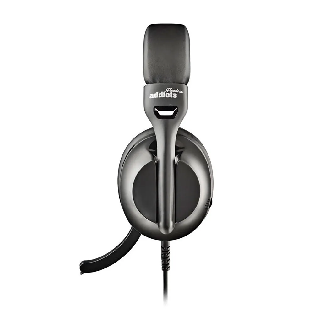 High-quality stereo headphones with height-adjustable and foldable microphone.