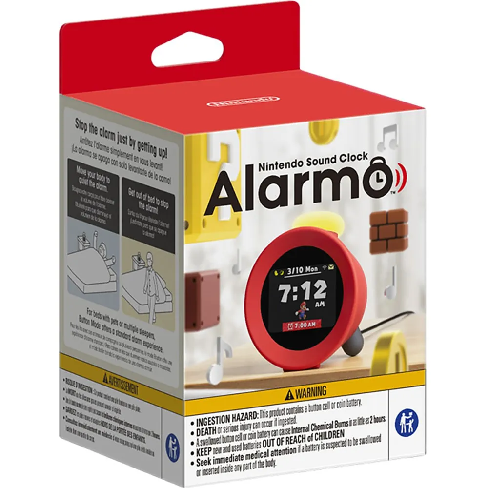 Introduce a little play to your wake-up routine with Alarmo, the interactive alarm clock from Nintendo. Wake up to scenes, sounds, and characters from your favorite games like *Super Mario Odyssey* and *The Legend of Zelda: Breath of the Wild*. Its built-in motion sensor makes waking up a game: wave your hand to snooze and get out of bed to stop the alarm for a victory fanfare! Beyond the alarm, enjoy Nintendo-themed soundscapes throughout the day and track your sleep patterns. It´s a fun, hands-free way to start your day