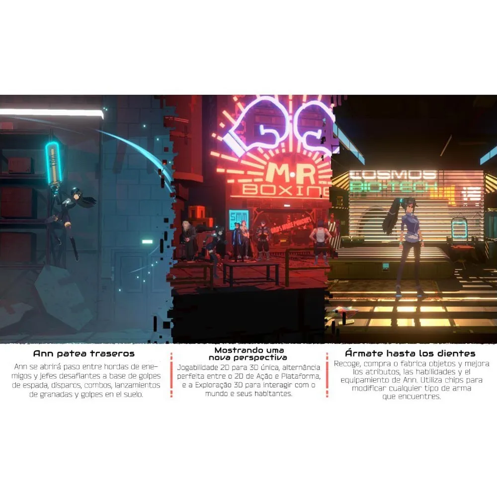 Experience a one-of-a-kind visual style that combines the charm of 2D pixel art with the depth of 3D exploration. Engage in a dual-gameplay system that offers the freedom to explore vast cityscapes in 3D and dive into fast-paced, thrilling 2D side-scrolling combat. Customize your playstyle with a rich RPG system, allowing you to upgrade Ann´s skills, stats, and gear to become the ultimate cyber-warrior.