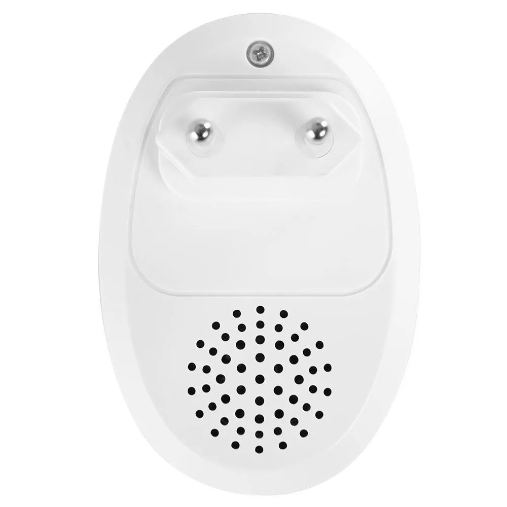 The operation of the wireless doorbell is done by radio waves. It is only necessary to connect the receiver to the electrical current. The button does not need any connection, and can thus be placed outside.