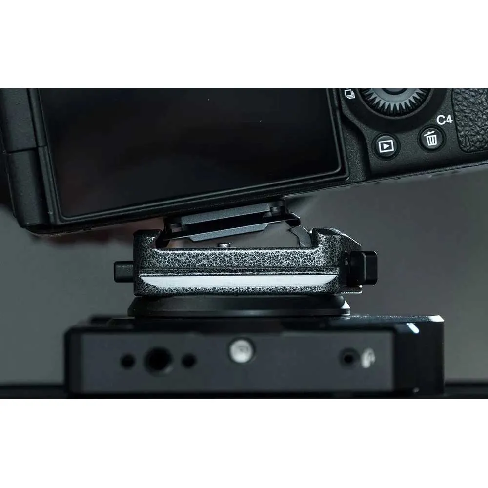 - The accessory is equipped with a double-locking system that ensures a stable hold on the equipment without any play. In addition, patented security screws prevent accidental detachment of the camera.
