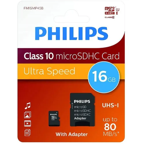 Philips Micro SDHC 16GB Class 10 Memory Card with adapter