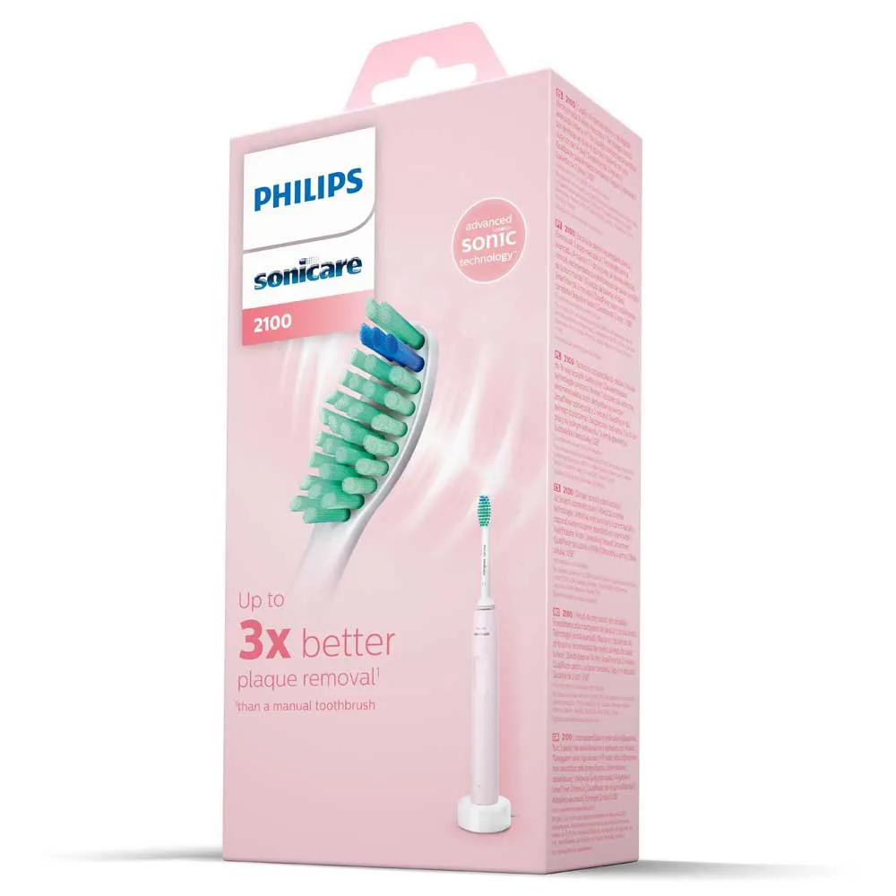 Say goodbye to manual brushing and hello to a superior clean with the Philips Sonicare 2100 Series. Its powerful sonic technology delivers 31.000 brush strokes per minute, removing up to 3x more plaque than a manual toothbrush while remaining gentle on your teeth and gums. The built-in SmarTimer and QuadPacer guide you to brush perfectly in just 2 minutes. Enjoy ultimate convenience with a slim, ergonomic design and a long-lasting 14-day battery life. Experience an exceptional daily clean without the strain