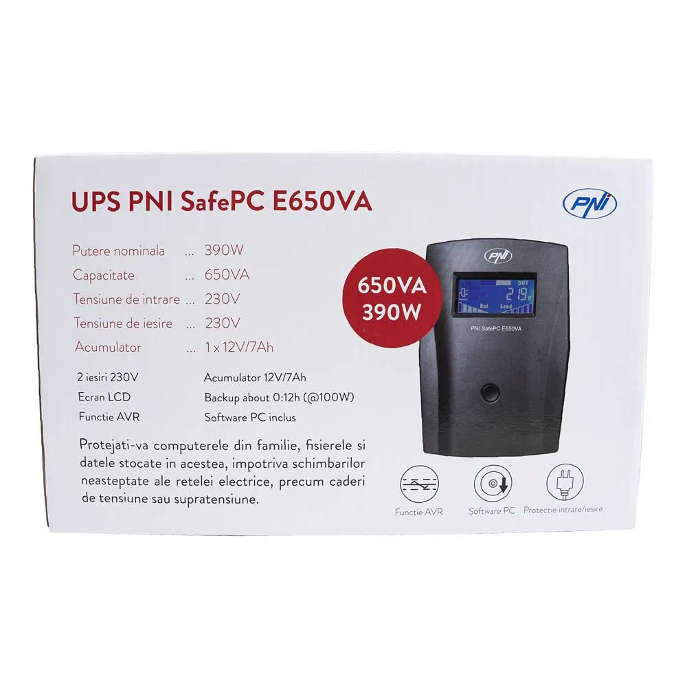 - UPS PNI SafePC E650VA is an uninterruptible power supply specially designed to protect small and medium-sized consumers from power outages and power outages.