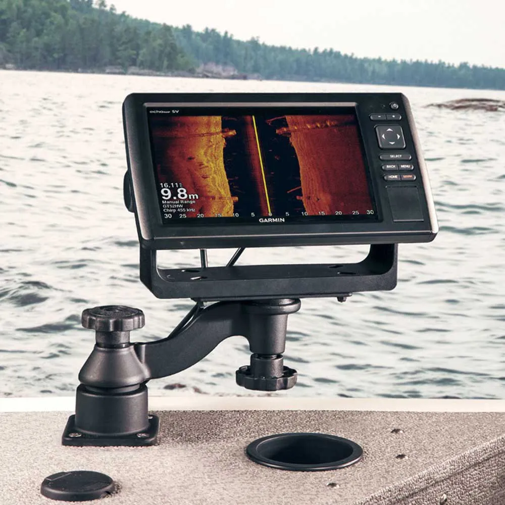 - Universal Drill-Down Fishfinder Mounting Solution Features 6´´ Swing Arm For Ideal Device Placement