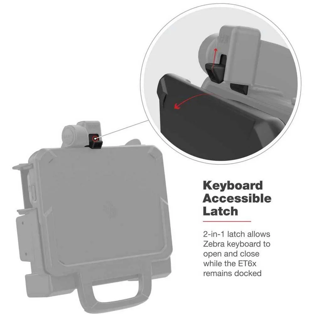 - Form-fit powered dock designed specifically for the Zebra ET60 & ET65 tablets; compatible with or without Zebra keyboard featuring unique 2-in-1 latch that secures the ET60/ET65 while allowing the keyboard to open and close freely