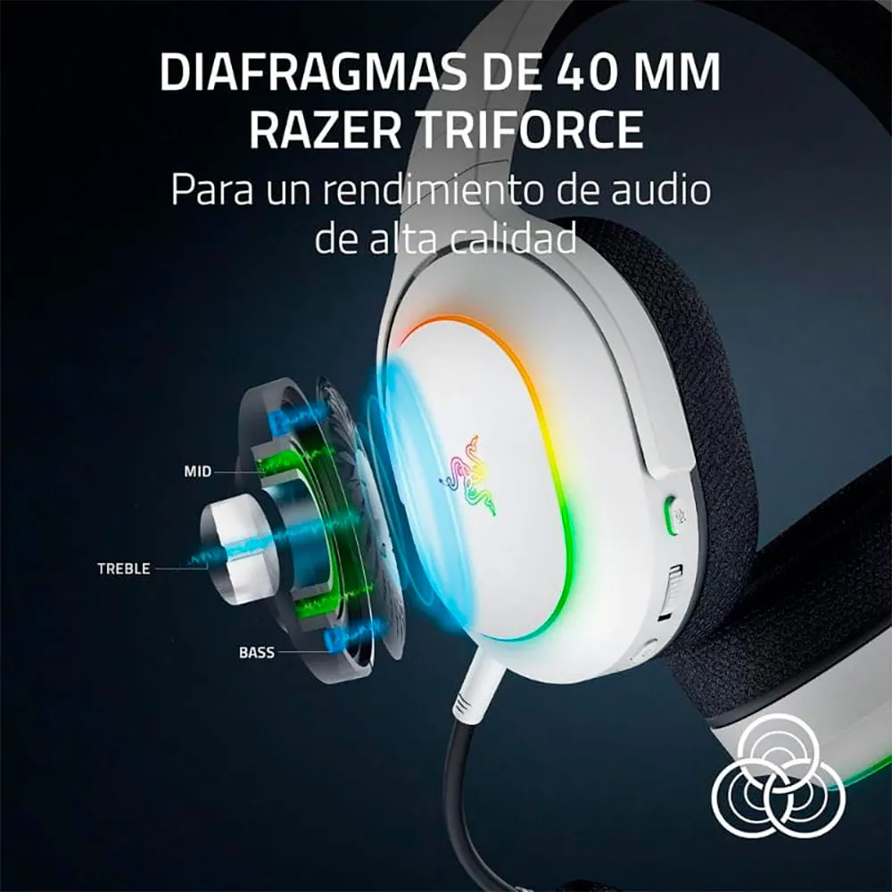 Unleash versatile audio with the Razer Barracuda X. Seamlessly switch between high-speed 2.4 GHz gaming and Bluetooth for mobile, or plug in with the 3.5mm cable for universal compatibility. Its 40mm drivers deliver immersive 7.1 surround sound for an unmatched in-game experience. A massive 50-hour battery life keeps you in the action, while the lightweight, ergonomic design provides all-day comfort. Communicate with crystal clarity using the detachable cardioid mic and manage everything with convenient on-ear controls. Your all-in-one headset for home and on the go