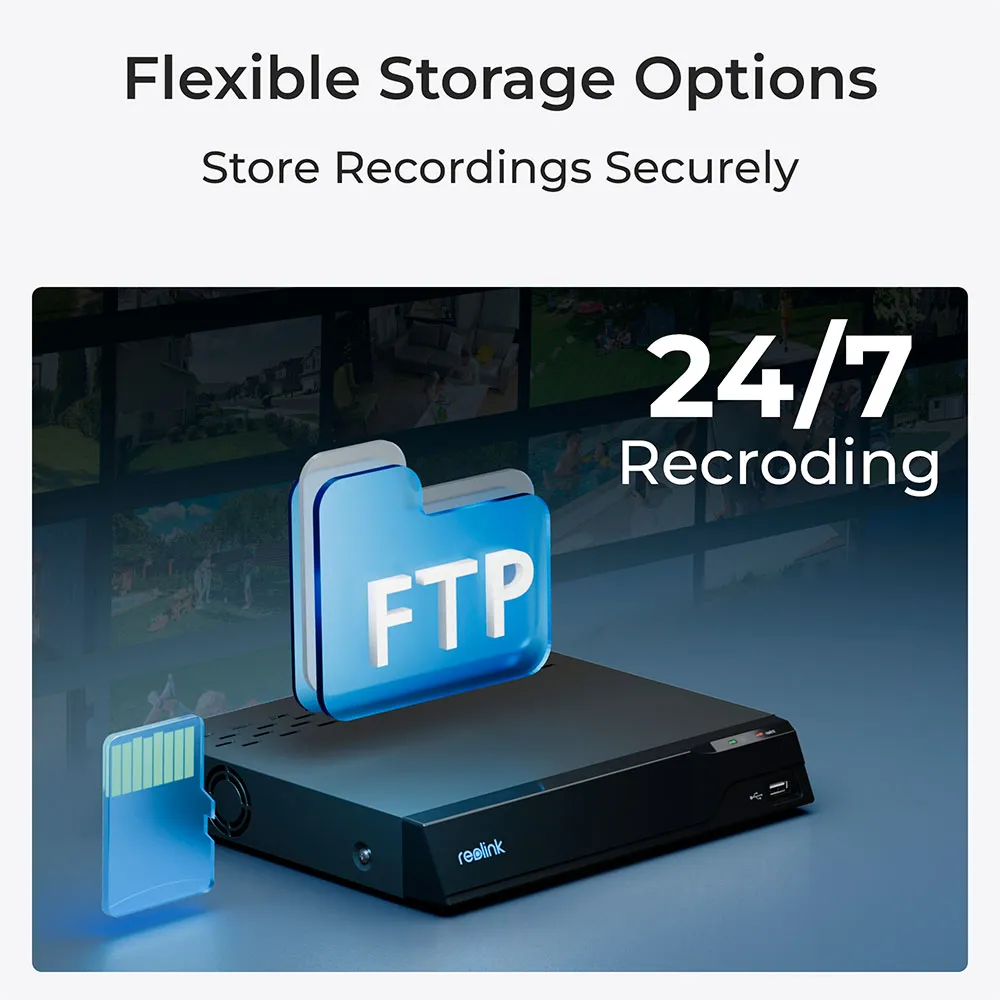 * Flexible Storage Options (MicroSD Card, Reolink NVR)