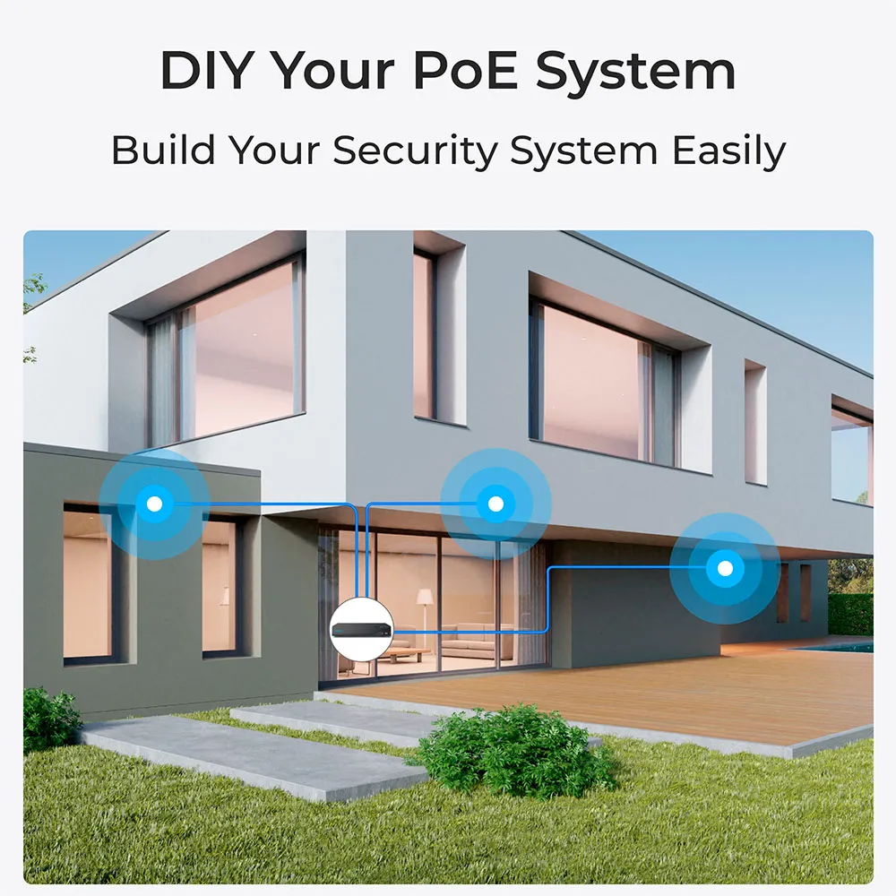 * Simplified Setup with Power over Ethernet (PoE): Forget about messy wiring and power adapters. PoE technology allows a single Ethernet cable to transmit both power and data to the camera, ensuring a stable connection and a quick, hassle-free installation.