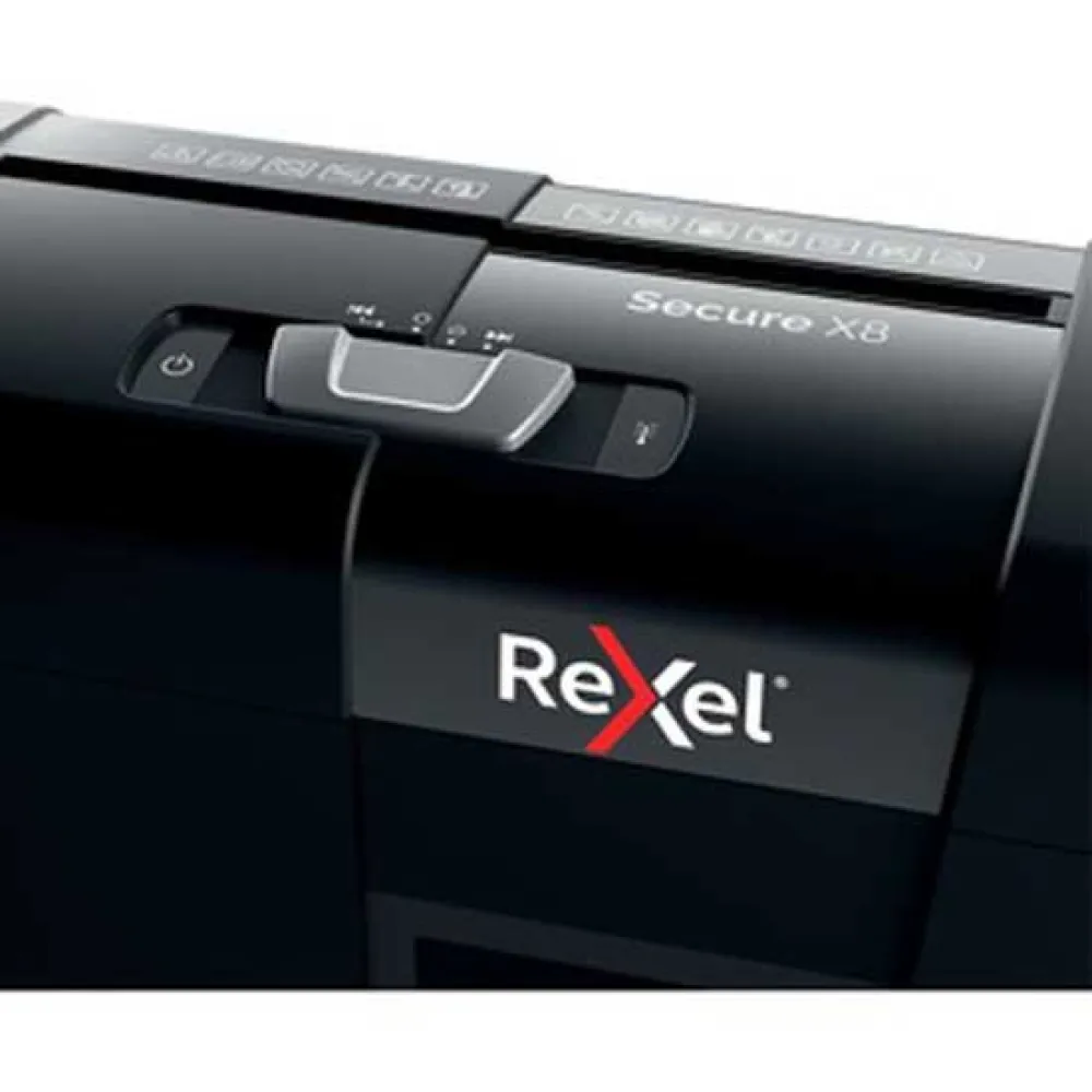 The Secure X8 shredder machine shreds up to 8 sheets of A4 paper (80gsm) in one go through the manual feed slot into P-4 (4x40mm) cross cut pieces.