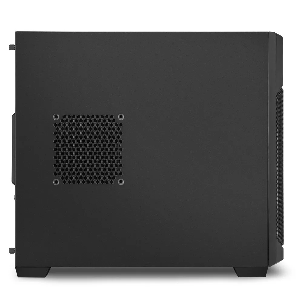 Whether it´s a sophisticated office computer, a compact multimedia station or an affordable gaming PC: The V1000 is a micro-ATX case which offers versatile solutions for individualists. The two pre-installed fans and the mesh grill in the front panel provides optimal airflow. This can be enhanced, if desired, with the addition of two more fans. The tunnel on the bottom panel hides the power supply and cables, supporting tidy hardware installation inside the case. There are also flexible possibilities for accommodating various data storage drives.
