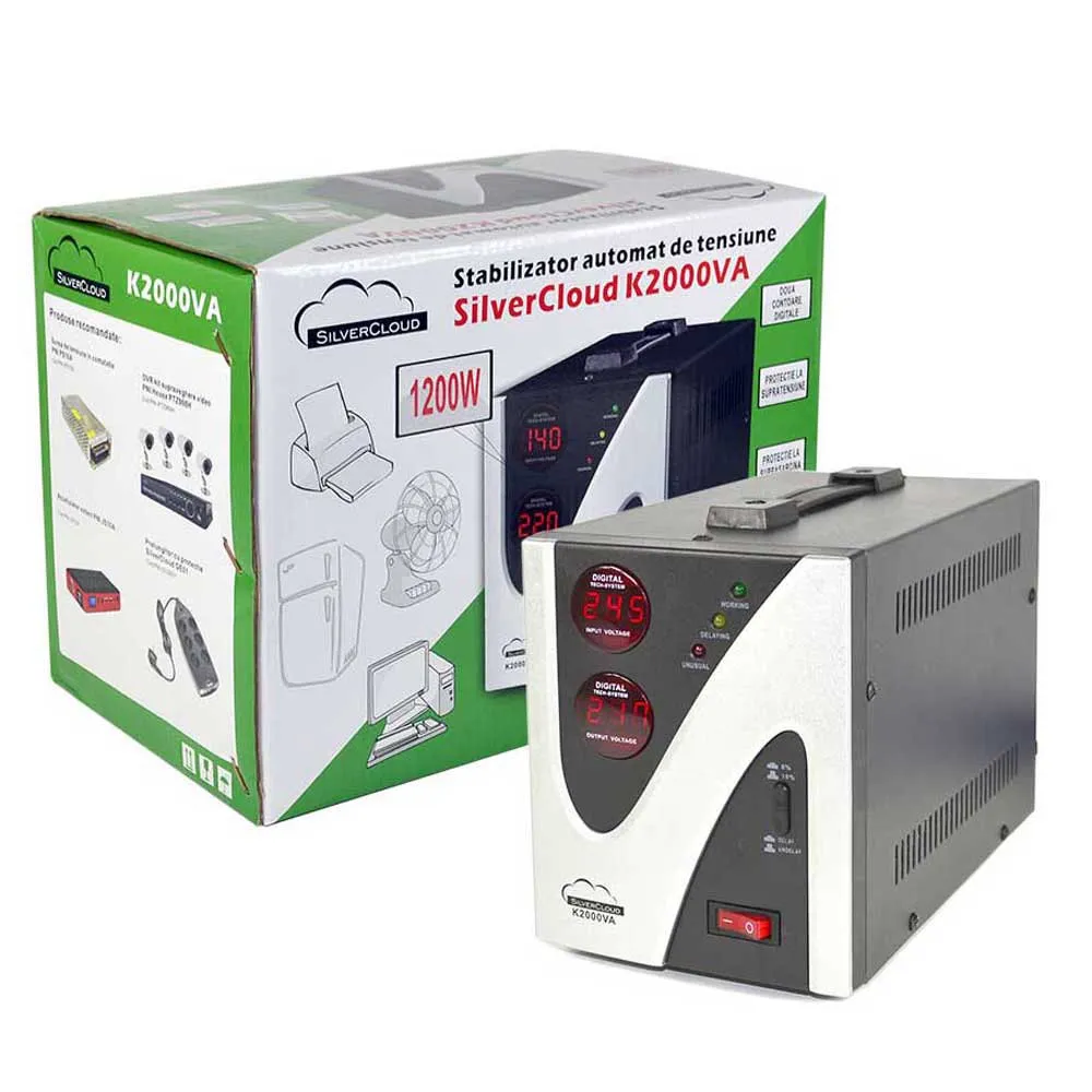 Power:- The SilverCloud K2000VA automatic voltage stabilizer can be used to power electronic devices that consume up to 1200 W.