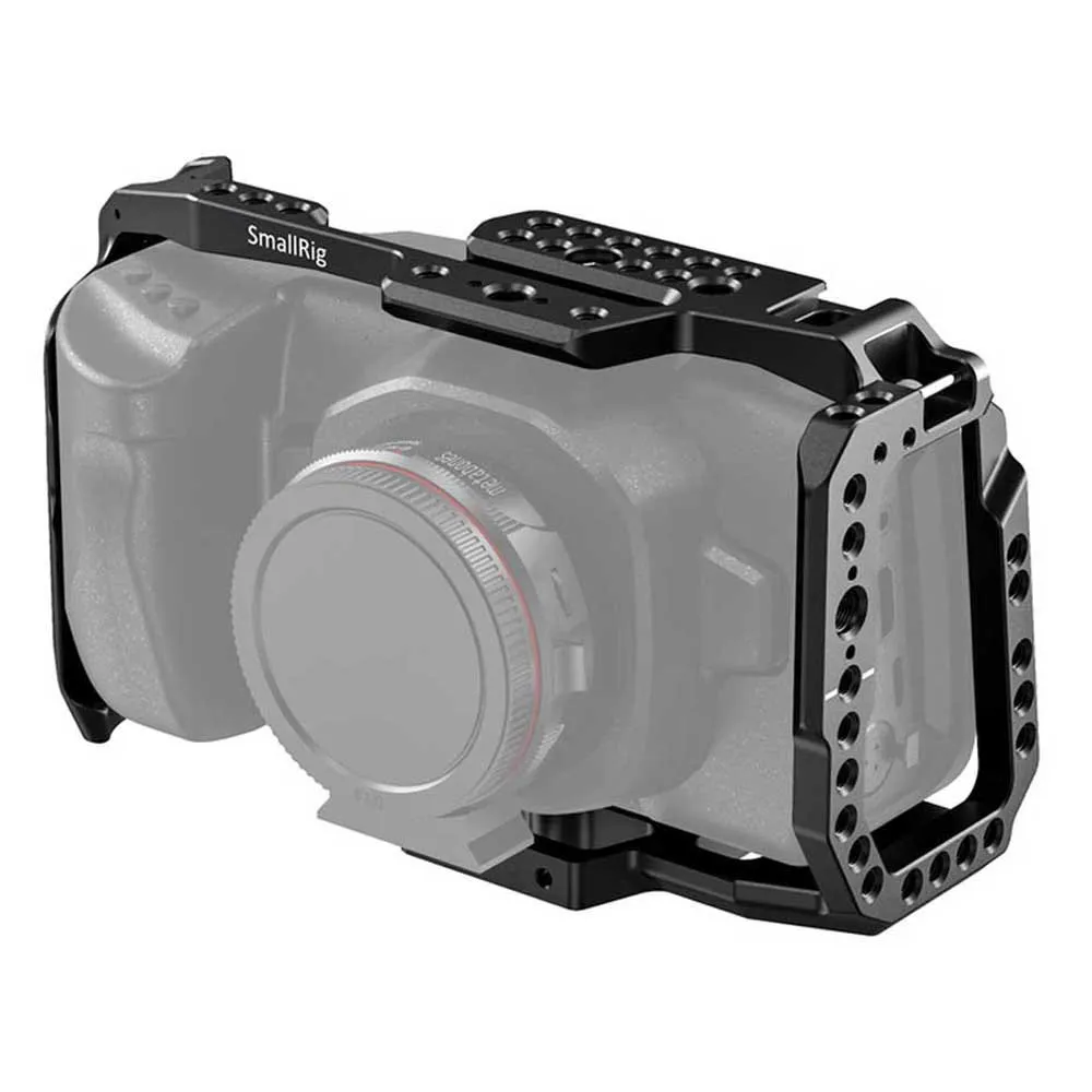Smallrig Full Cage For Blackmagic Design Pocket Cinema Camera 4k & 6k (New Version) 2203b Is A Form-Fitting Cage. It Is Securely Locked To The Camera By 1/4’’-20 Screws On The Top And Bottom, With Additional Locating Pins And Rubber Pads On The Base Plate Preventing Wiggles And Scratches. On The Top And Left Side Of The Cage Are Built-In Nato Rails, Where You Can Attach Smallrig Nato Top Handle 1955 Or Smallrig Wooden Nato Side Handle 2187 For Hand-Held Shooting. Multiple 1/4’’-20 & 3/8’’16 Threaded Holes And Arri Locating Holes Are Designed To Attach Accessories, Such As Smallrig Ballhead Arm 2070. For Users Who Record Videos, A Samsung T5 Ssd Mount 2245b Would Be A Good Choice. The Cage Is Compatible With Smallrig Hdmi & Usb-C Cable Clamp 2246b To Fix The Cables. It Works With Smallrig Metabones Adapter Support 2247 On Bmpcc 4k To Keep Your Lens Stable. Besides, A Built-In Hex Spanner Is Provided On The Bottom Plate.