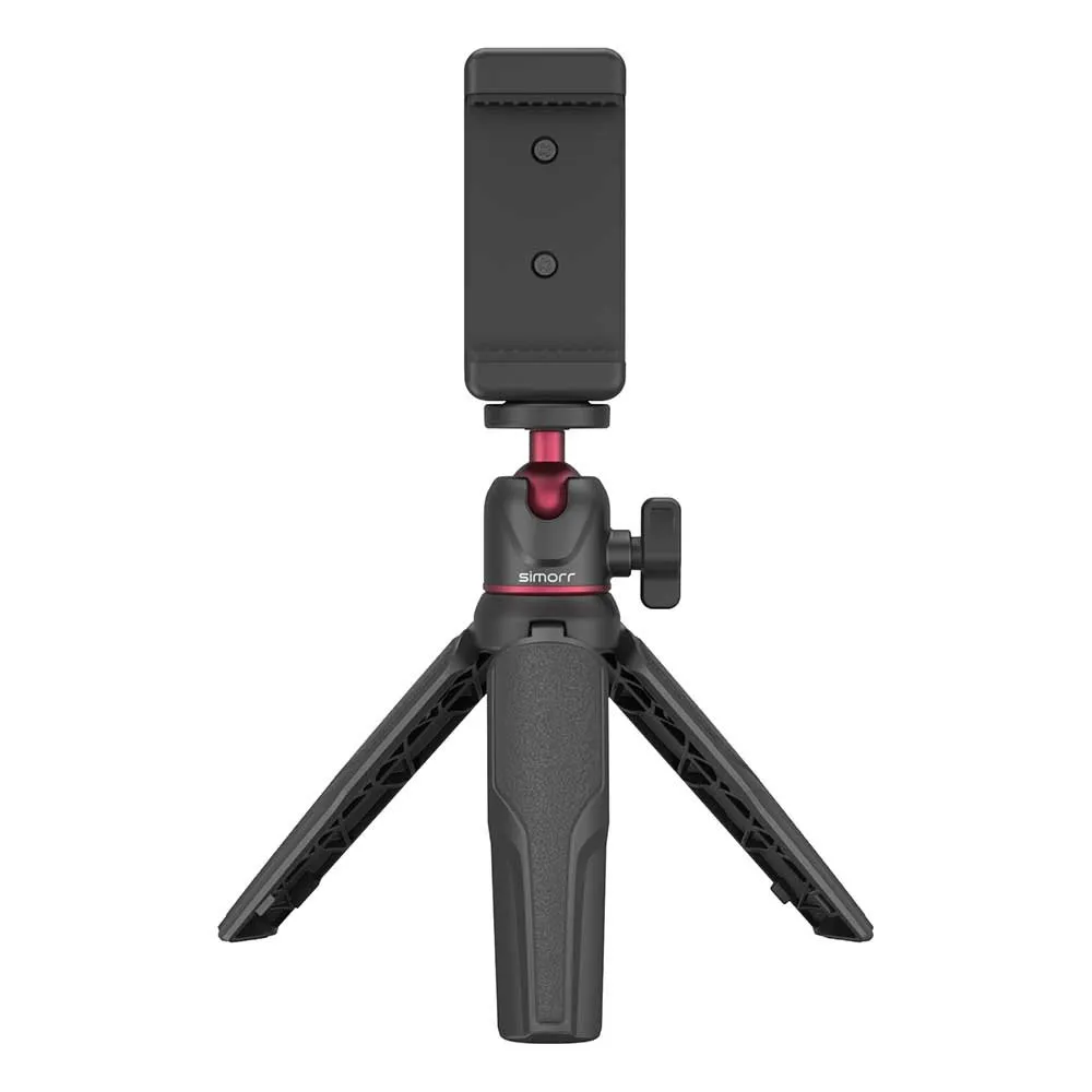 simorr Vigor VK-20 Black Vlog Kit 3512 consists of a portable vlog tripod and standard phone clips for compact portability. The tripod and mobile phone clip use 1/4 screw for connection, mobile phone clip with a separate cold shoe and 1/4 screw port, can expand the microphone, LED light, and other equipment.