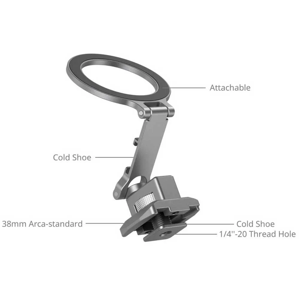 SmallRig Arca-Standard Phone Support with Cold Shoe Mount 5339 is tailored for mobile content creation, compatible with iPhone 16 Pro Max, iPhone 16, iPhone 15 Pro Max, iPhone 15, iPhone 14, and Phones with MagSafe.
