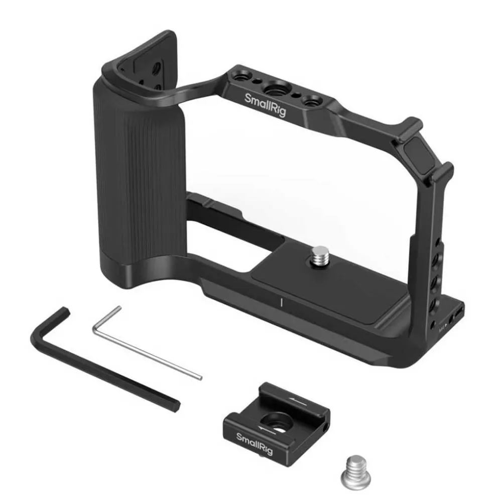 Elevate your content creation and unlock the full cinematic potential of your camera with the SMALLRIG 5427 Cage, meticulously engineered for the Canon EOS R50. This form-fitting aluminum cage serves as the ultimate foundation for your vlogging or filmmaking rig, providing robust protection against the rigors of daily use while dramatically expanding your mounting options for essential accessories. Designed to integrate seamlessly with your camera, it maintains full access to all buttons, ports, the battery compartment, and the articulating screen, ensuring your workflow remains uninterrupted.