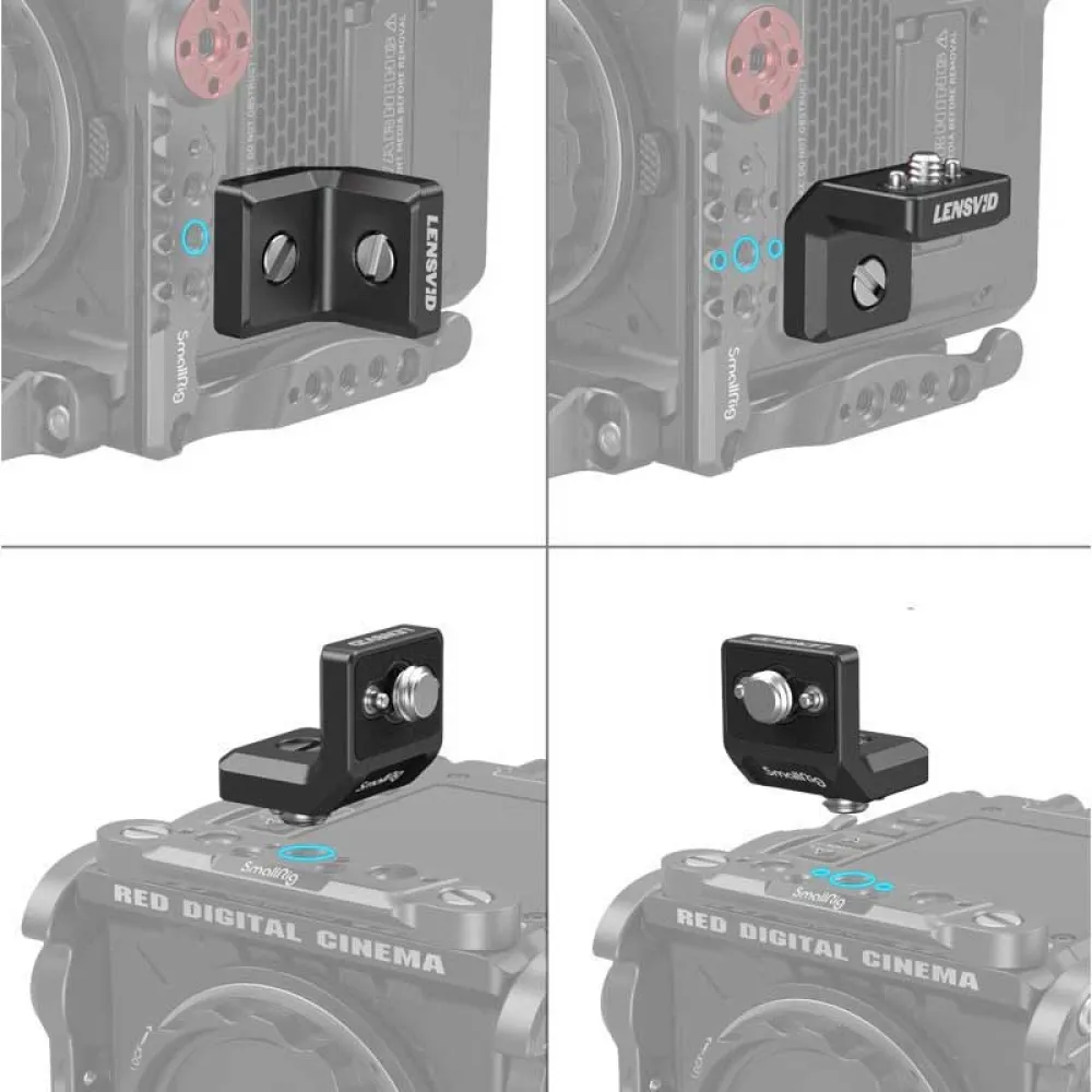 * Multiple 1/4"-20 threaded holes are located on the side and bottom for attaching accessories like the SmallRig Cold Shoe Mount 2736 or Magic Arm 2070.