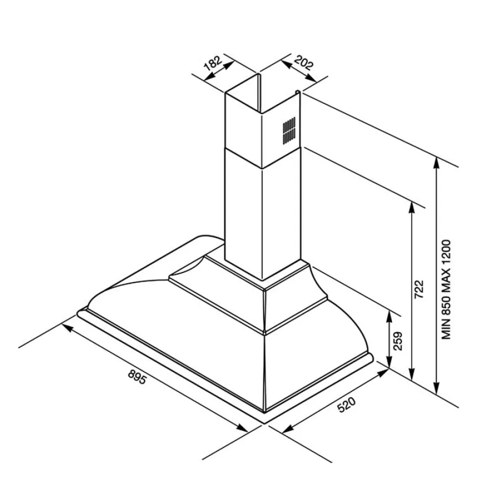 * Vent Outlet Diameter: 150 mm