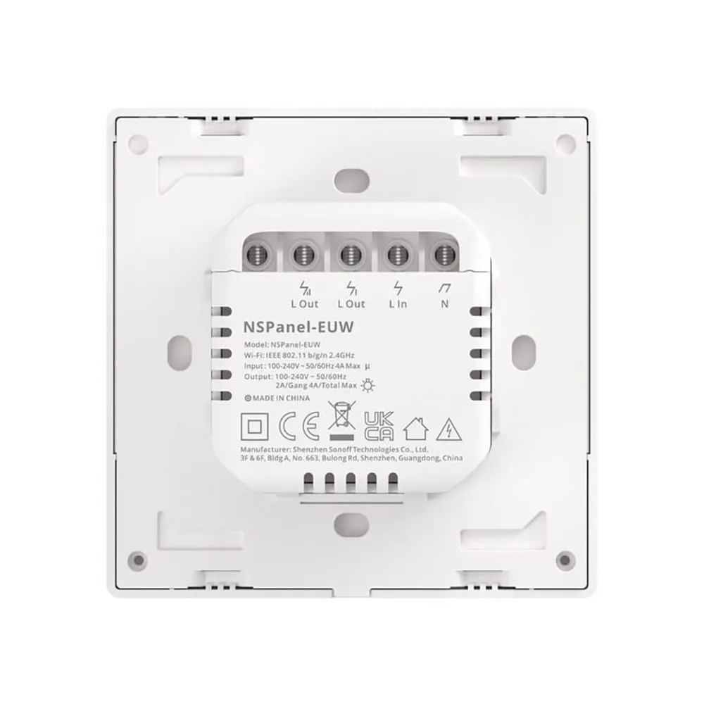 - NSPanel stands out from competitive products due to its robust construction and aesthetic design. Materials such as PC V0, CRS, and tempered glass ensure durability and resistance to damage. Additionally, its compact dimensions (86 x 86 x 41.7mm) and elegant white color allow for easy integration of the switch into any interior.