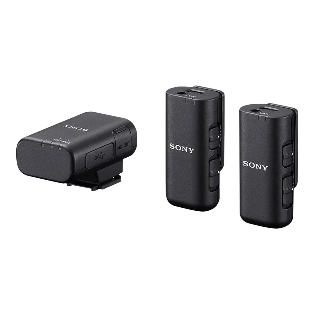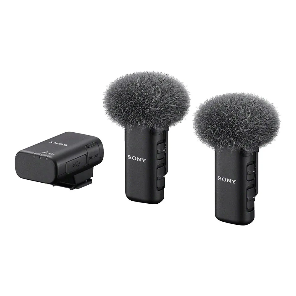 Connecting the dual-channel receiver to a camera1 from Sony that supports the Multi Interface (MI) Shoe, such as one of the α™ series digital interchangeable-lens cameras or vlog cameras, allows the digital audio signal output from the receiver to be recorded directly by the camera body, enabling high-quality sound recording with minimal noise contamination.