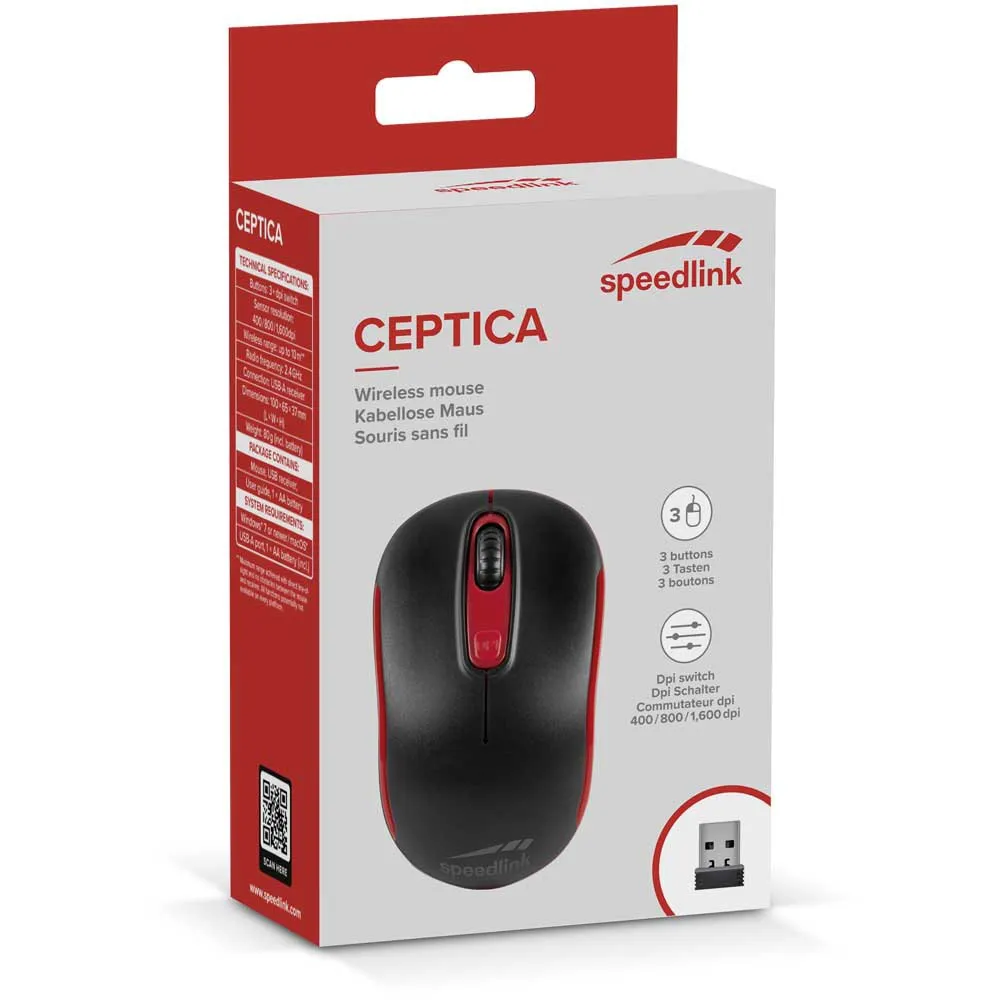 The Ceptica wireless entry-level mouse is universally usable thanks to its symmetrical shape, suitable for left- and right-handed users. The proven 2.4 GHz technology ensures a comfortable movement radius of up to 10m around the computer. Three buttons, the simple design and the precise sensor with adjustable 800/1,200/1,600dpi complete the functional wireless mouse.