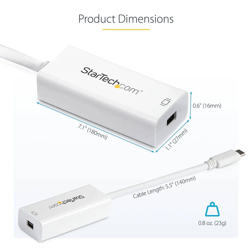 The compact USB-C to mDP adapter is lightweight and fits perfectly in your laptop bag.
