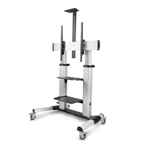 The heavy-duty TV stand´s aluminum and steel construction makes it ideal for commercial use in environments with multiple users and frequent movement between areas.