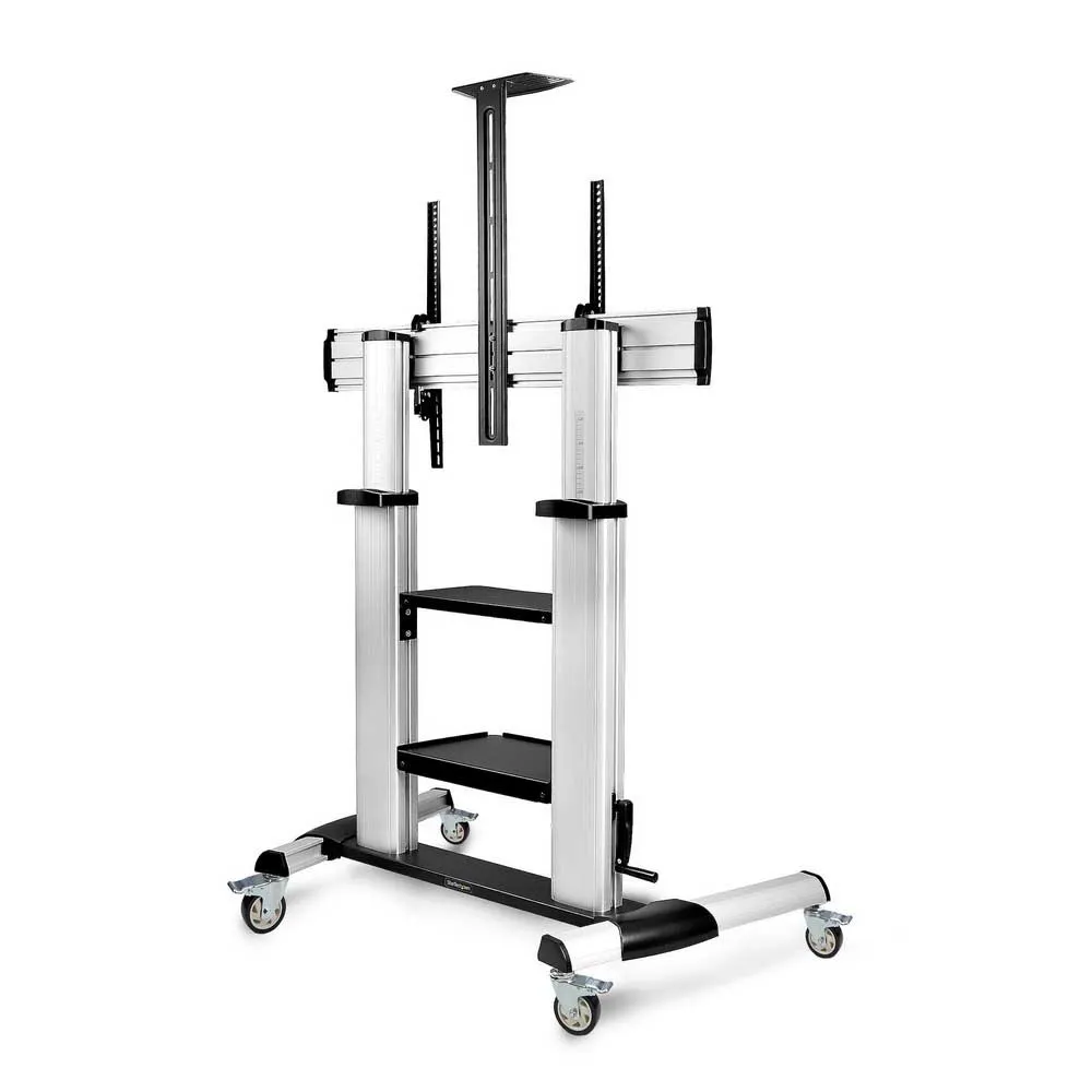StarTech.com Rolling TV Cart/Stand On Wheels For 60-100inch Flat Screens Up To 220lb (100kg), Height Adjustment via Hand Crank, Mobile/Portable Trolley Mount.