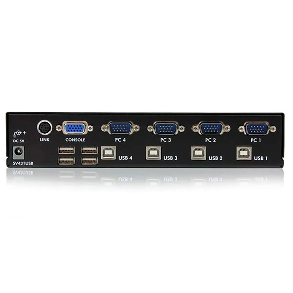 The SV431USB 4 Port rack mountable VGA USB KVM Switch with Hub offers simple control of up to four computers from a single monitor/display and USB peripheral set (keyboard, mouse).