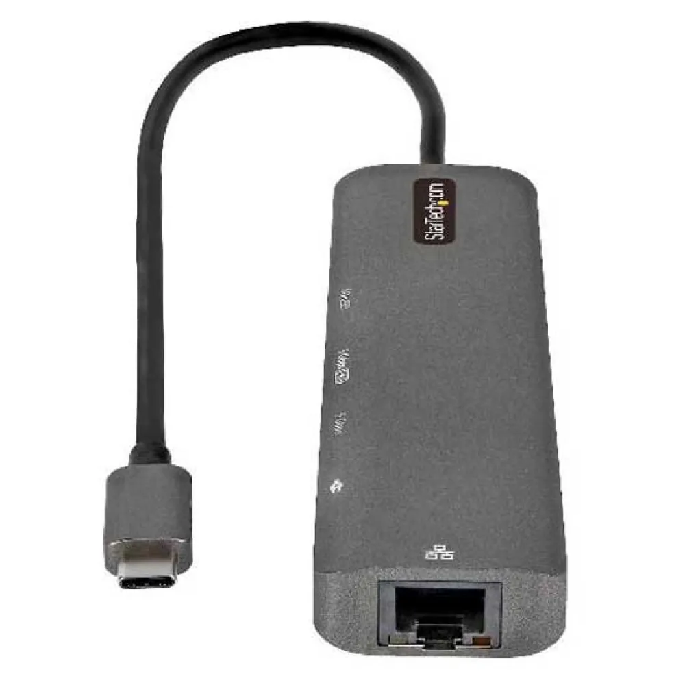 This USB-C multiport adapter with DP 1.4 supports 4K 60Hz HDMI® and turns your MacBook Pro, Dell XPS, or other USB-C™ laptops or tablet into a workstation, anywhere you go. The USB Type-C multiport adapter provides 4K HDMI video output, two USB 3.2 Gen 1 Type-A (5Gbps) ports and a Gigabit Ethernet port, all through one connection to your laptop´s USB-C or Thunderbolt 3™ port. Plus, it offers advanced charging through USB Power Delivery 3.0 and an extra-long attached 12-inch (30 cm) host cable for an extended reach to offer more set up flexibility.