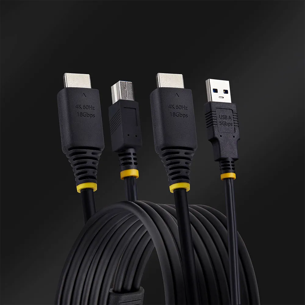 Combine HDMI 4K 60Hz and a USB 5Gbps connection into a single cable for connecting a computer to a KVM Switch KVM cable provides a reliable connection between a computer and a HDMI KVM switch with USB 5Gbps support Manage Cables with Ease Simplify cable management by combining multiple connections into a single bundle This minimizes the number of individual cables that need to be handled, making installation faster and more efficient They are perfect for environments where KVMs are essential, such as data centers, server rooms, edge networking, and remote management setups, helping to reduce cable clutter and maintain an organized workspace Works with Any KVM Switch This KVM cable works with any operating system, including Windows, macOS, ChromeOS, and Linux It also supports all major hardware platforms, such as Intel, AMD, and Apple Silicon KVM combo cable is HDMI 2.0 compliant, supporting resolutions up to 4K at 60Hz, HDR10, and HDMI audio for high-quality audio/video experience The USB 3.0 Type-A to Type-B connector provides fast data transfer speeds of up to 5Gbps The Advantage 10ft (3m) HDMI and USB 5Gbps KVM Cable, 4K 60Hz, HDMI 2.0 and USB Combo Cable for KVM Switches Cable length:3.1 m, Keyboard port type:USB, Mouse port type:USB Compliance certificates:RoHS Quantity per pack:1 pc(s), Weight:450 g, Package width:395 mm Master (outer) case width:400 mm, Master (outer) case length:300 mm, Master (outer) case height:300 mm KVM COMBO CABLE:Connect a computer to an HDMI KVM Switch that features USB 5Gbps