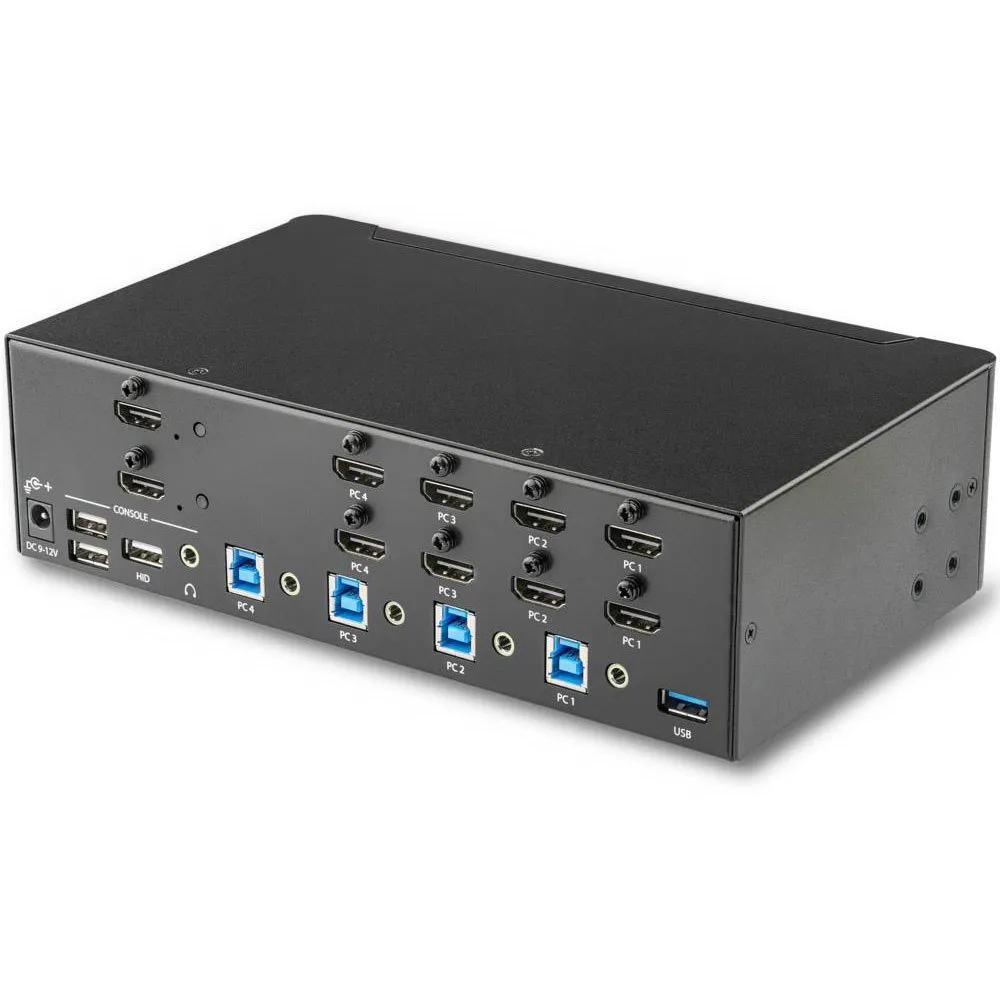 This 4-port KVM switch offers two USB 3.0 ports, as well as four HID keyboard and mouse ports, so you can share peripheral devices between each computer and avoid the cost of separate equipment. The USB 3.0 hub automatically switches your connected devices to the selected computer, saving you the hassle of disconnecting and reconnecting peripherals.