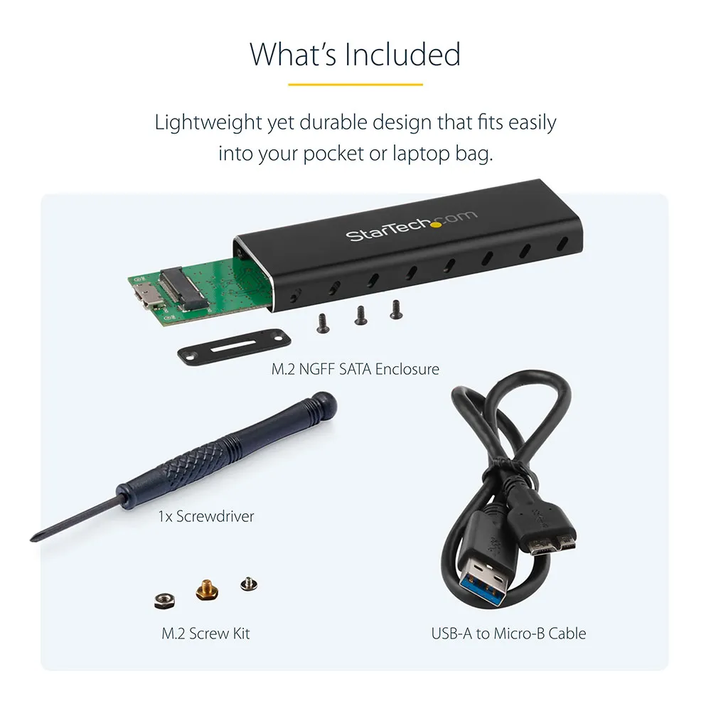 The SM2NGFFMBU33 external USB 3.0 to M.2 (NGFF) enclosure turns your SATA M.2 solid state drive into a portable, high speed USB 3.0 drive.