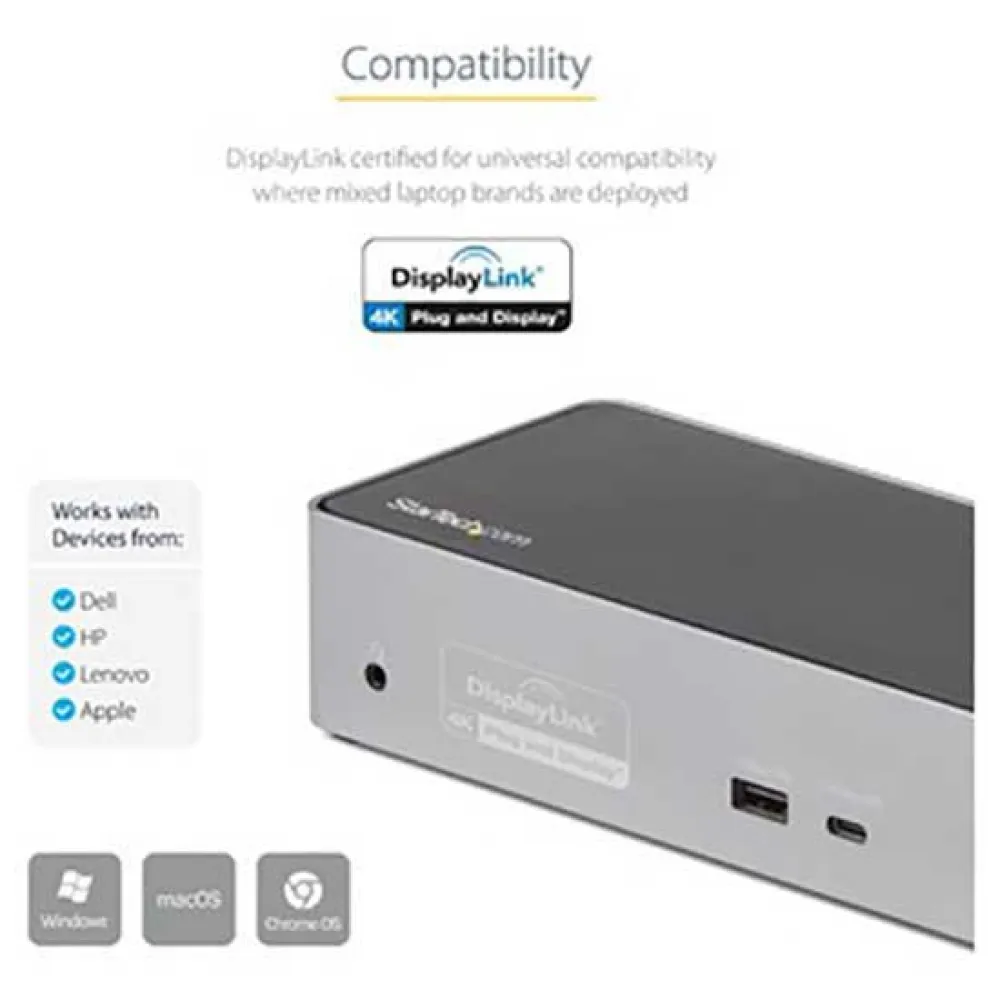 - Compatibility: Displaylink Certified For Universal Compatibility Where Mixed Laptop Brands Are Deployed & Works W/ Devices From Dell, Hp, Lenovo & Apple; Supports Windows, Macos, Chrome Os; Port Replicator Works W/ Tb3/Tb4, Usb4 & Usb-C 5gbps Host Devices