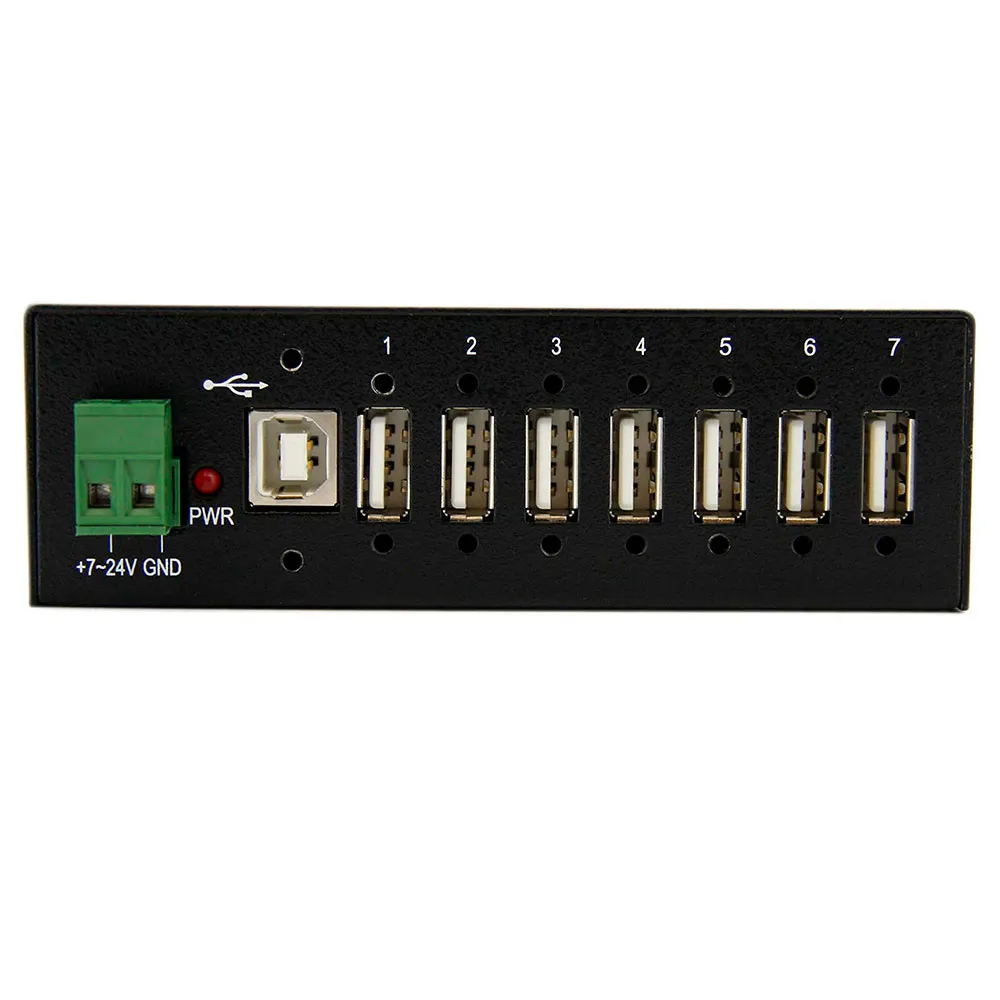 This TAA compliant 7-port industrial USB 2.0 hub gives you the scalability you need in harsh industrial environments, product and repair labs, conference rooms or office workstations. With its rugged industrial grade metal housing, it is designed to meet the advanced requirements of connecting a high number of devices in factories and office environments.